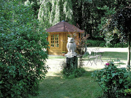 Der Tannenhof ist 2,3 ha groß und bietet viel Platz zum Verweilen. Unsere beiden Ferienhäuser stehen weit entfernt voneinander, haben jeweils eine eigene Terrasse bzw. Sitzgelegenheit im Garten. Sie können sich (und natürlich auch Ihren Hund, das Grundstück ist komplett eingezäunt) auf dem ganzen Grundstück frei bewegen und auch anderen Sitzgelegenheiten, wie z. B. unseren „Elfengarten“ mit der Hollywoodschaukel und den Pavillon nutzen.