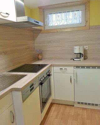 - Getrennte Küche mit Kühlschrank, Geschirrspüler, Elektroherd, Kaffeemaschine, Toaster und Wasserkocher
